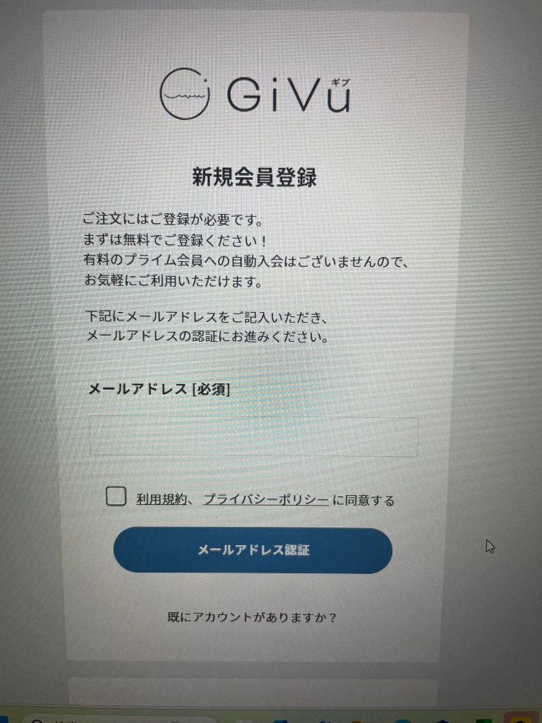 新規登録画面からメールアドレスを入力して会員登録(ホームページの右下)、