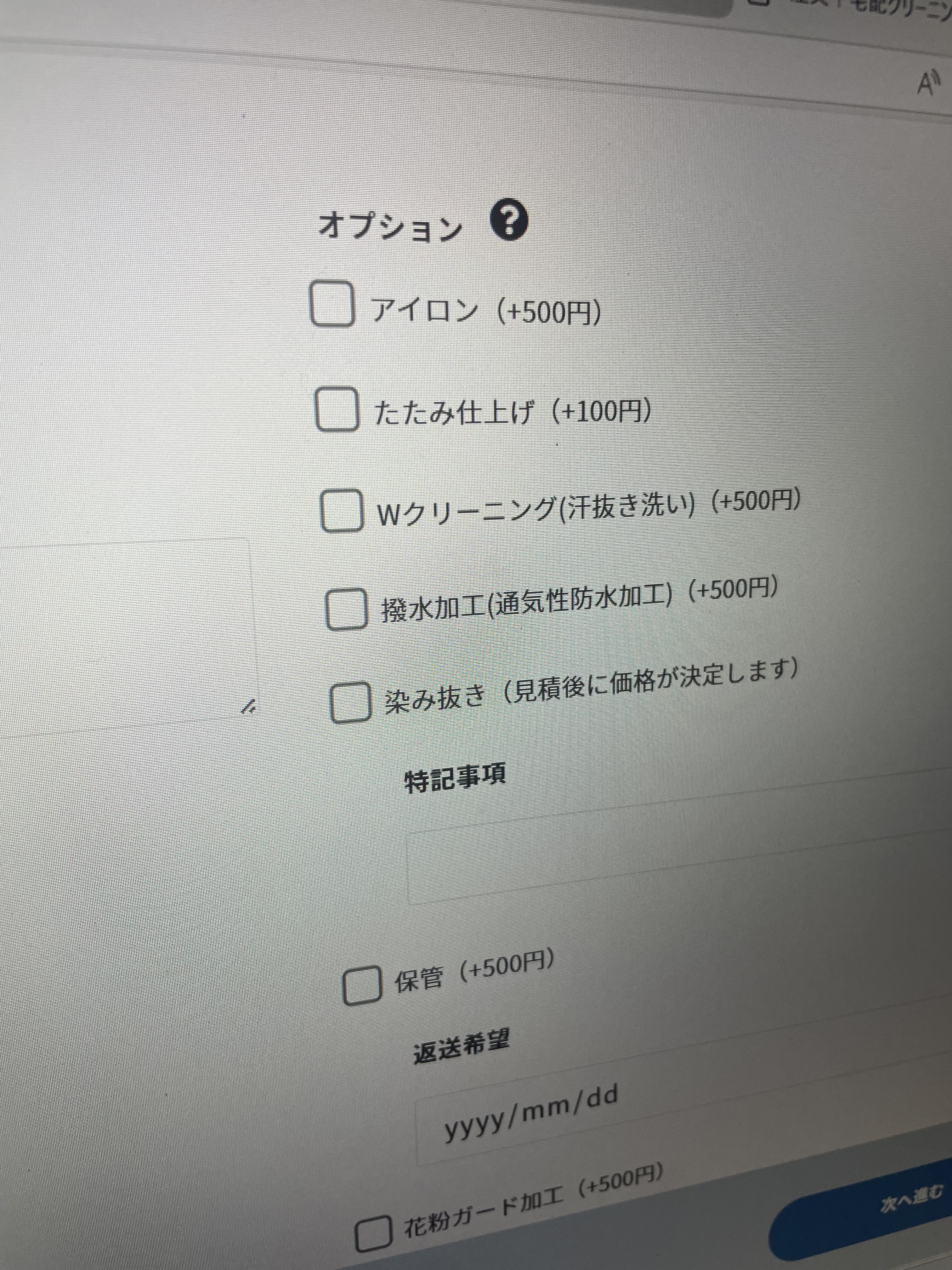 特に染み抜きやお知らせしておきたいことがあればここに記入できるようになってます。