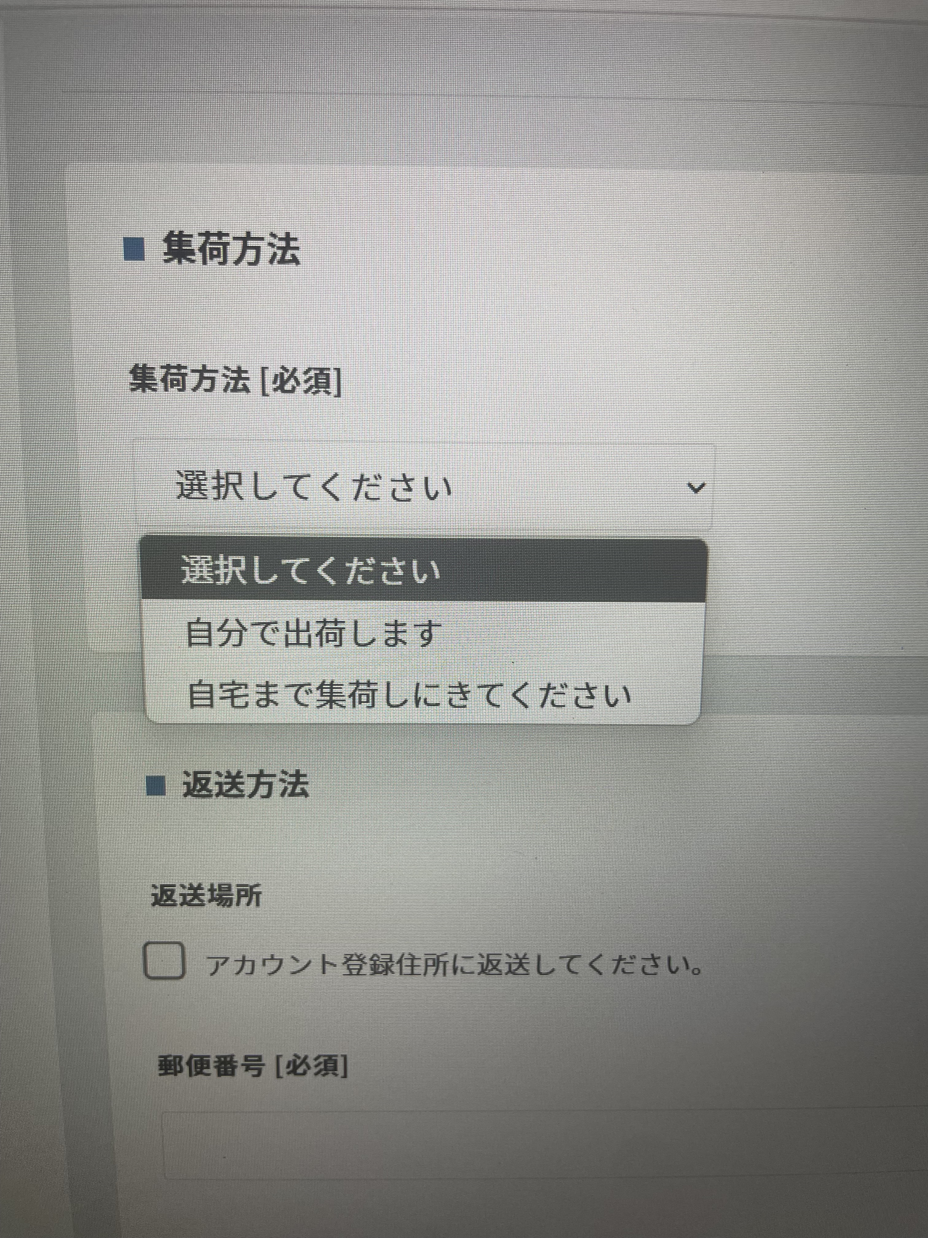 お次は、集荷方法を選ぶ。私は今回集荷を依頼し、自宅にあった段ボールを使用。